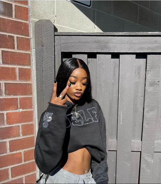 SELF Rhinestone Cropped Hoodie